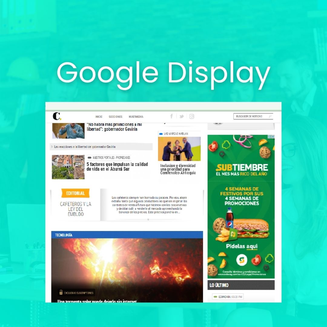 Publicación de anuncios display en páginas web, incluye lo siguiente: